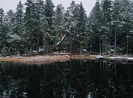 The 2 houses where you will sleep are well hidden in the forest and just 1 minute walk from the lake with a private access.